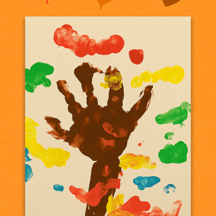 Jesenska drevesa in otroških dlani ter prstkov.